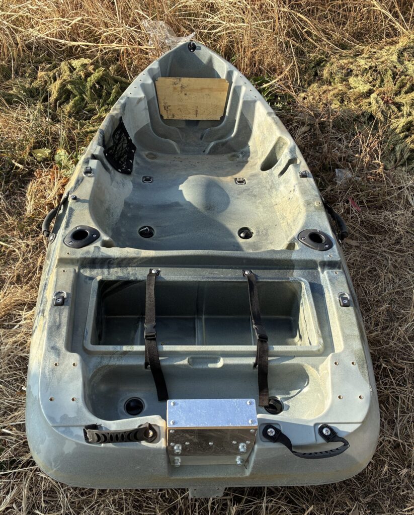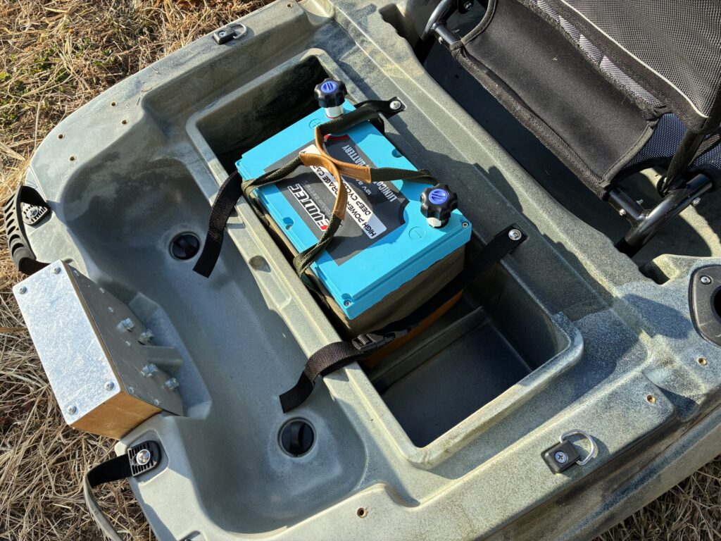 しかし、私はコンパクトカヤックの後端にハンドコンのエレキを取り付けるスタイルで釣りをしています。