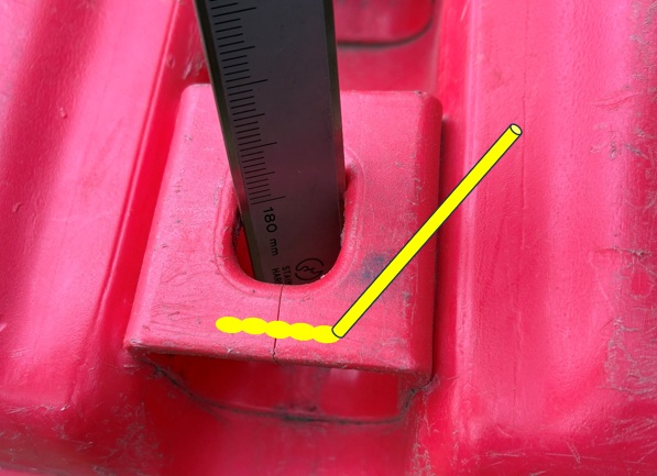 なお、前回の記事でも紹介していますが、フロートに割れが生じたのは下の写真にあるアルミバーを差す部分です。