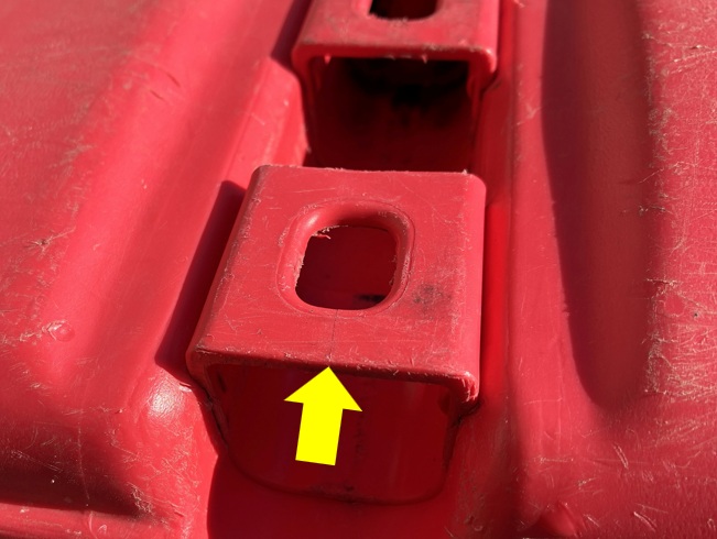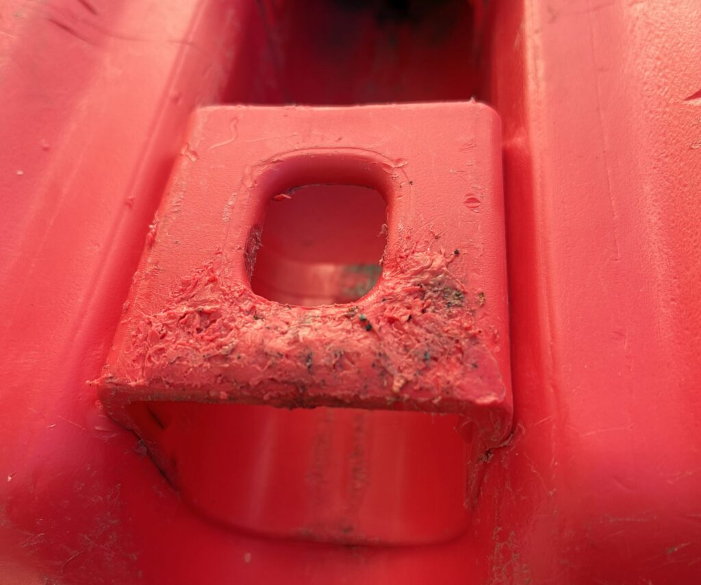 写真だとわかりにくいですが、フロートにアルミバーを差すところに割れが生じました。