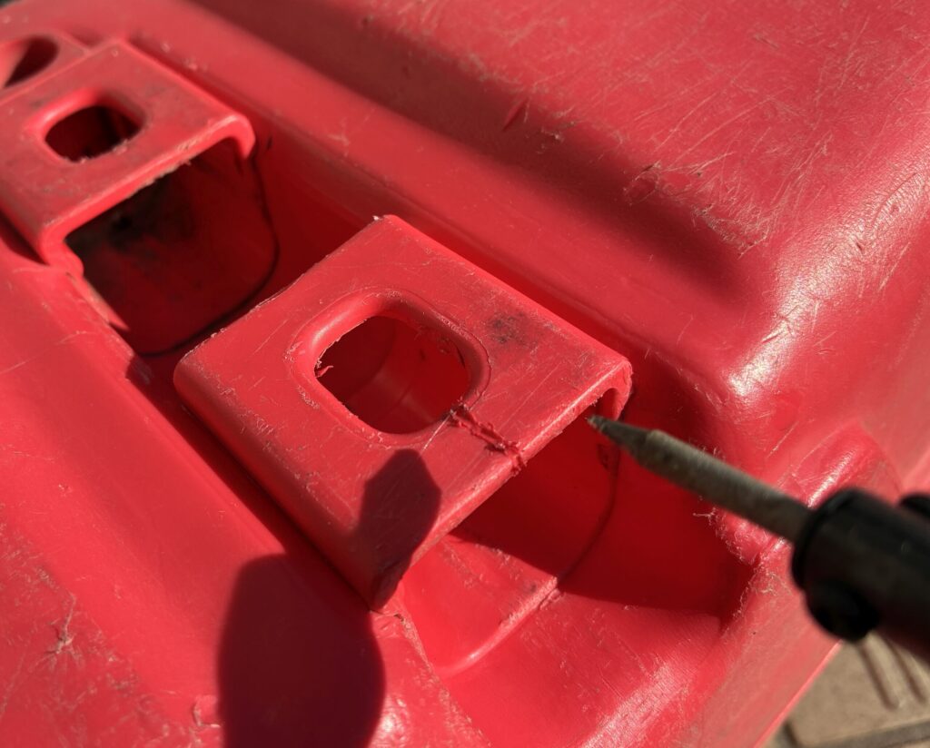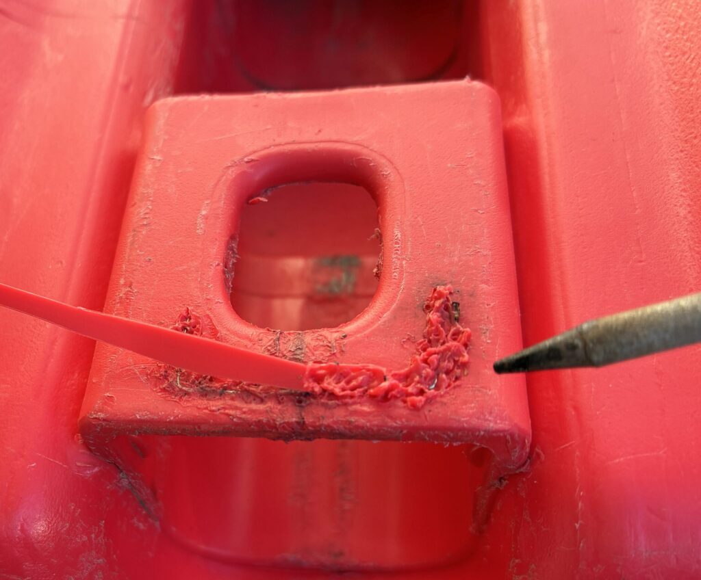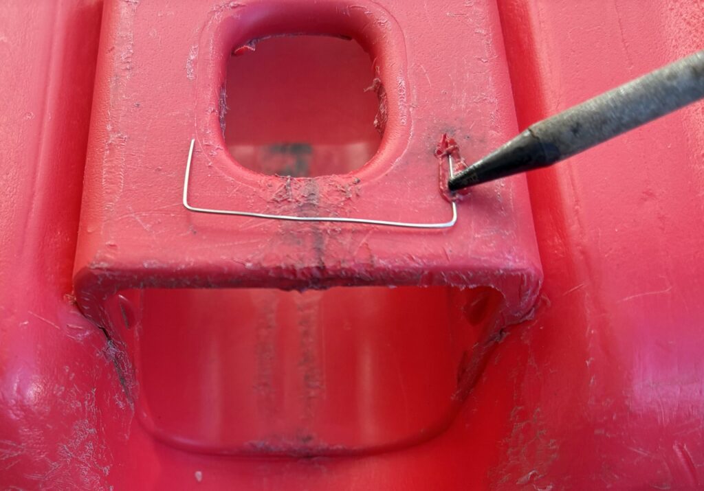 3つの方法を組み合わせて、ポリエチレン製のフロートの割れを修理してみました。