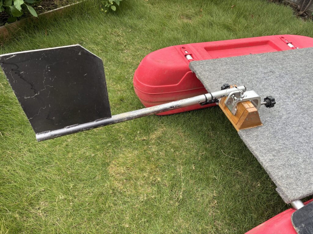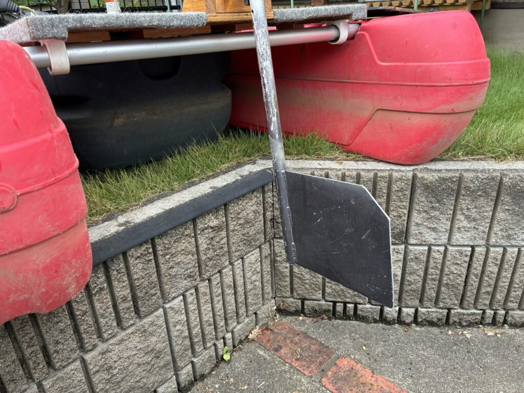 フロートボートには上の写真のように、板の部分を上に跳ね上げた状態で取り付けます。
