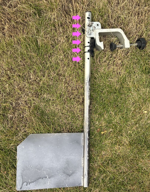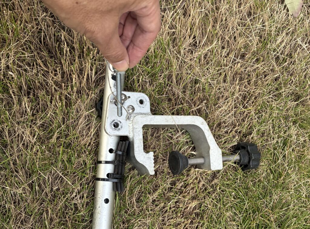 ラダー本体の軸には複数の穴があいていますので、水中に潜らせる深さを調整することができます。