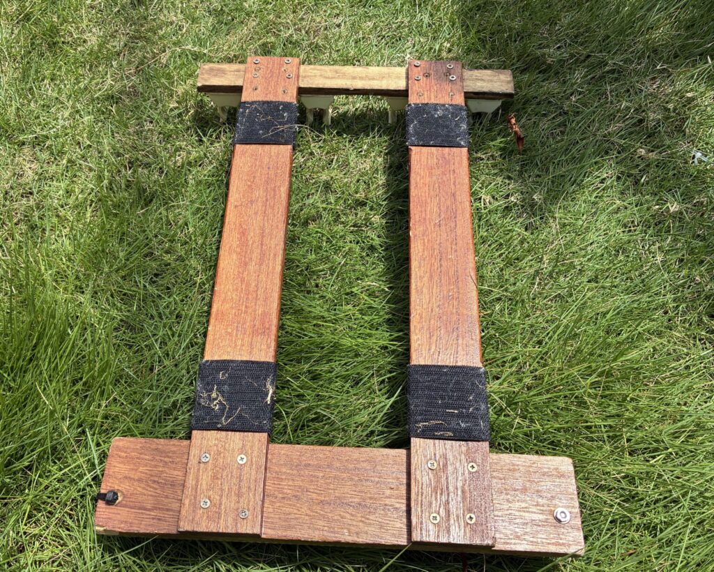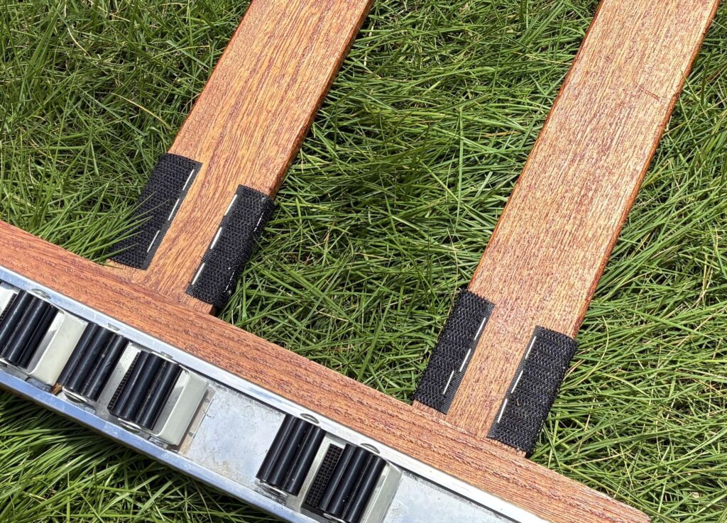 私はこの面積のマジックテープでシートデッキに取り付けていて、十分に固定できていると感じていますが、心配な方はマジックテープの面積を増量してください。
