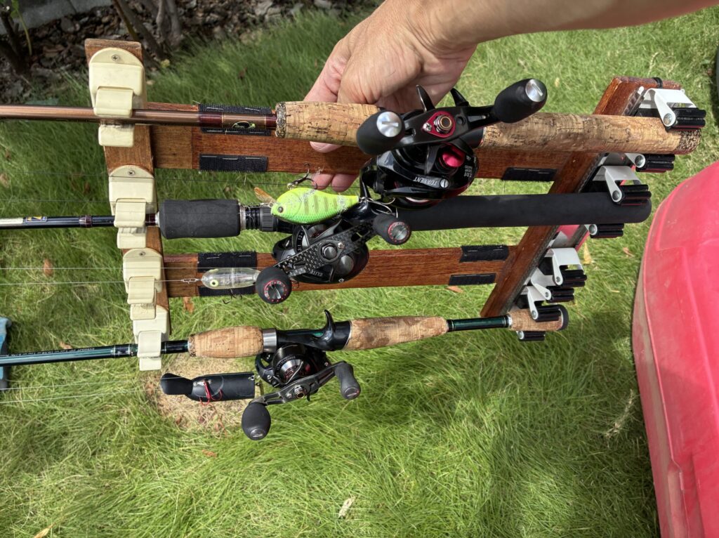 フロボ(フロートボート)でバス釣りをするときはタックルを3~4セットは持っていきたいですよね。今回は複数のタックルをまとめて持ち運び、そのままフロボに一瞬でセットし、タックルチェンジもスムーズに行うことができる自作ロッドホルダーを紹介します。